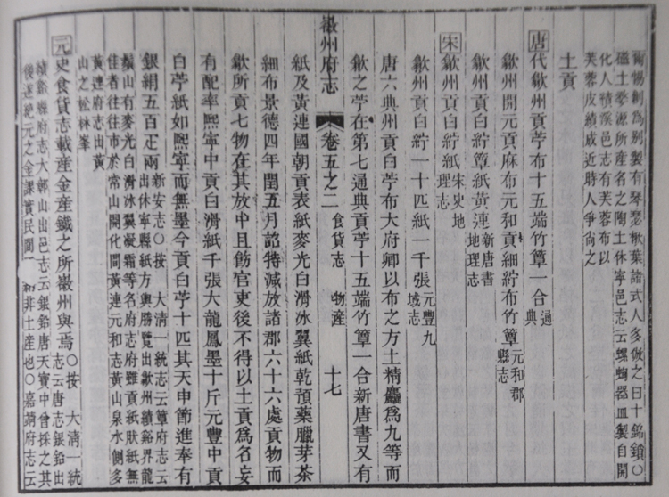 明代屠隆在《纸墨笔砚笺·纸笺》中记载:“宋纸,有澄心堂纸极佳,宋诸名公写字及李伯时(李公麟)画,多用此纸。……有歙纸,今徽州歙县地名龙髯者,纸出其间,光滑莹白可爱。有黄白经笺,可揭开用之。有碧云、春树笺、龙凤笺、团花笺、金花笺。有匹纸,长三丈至五丈。陶殻家藏数幅,长如匹练,名鄱阳白。有藤白纸,观音帘纸,鹄白纸、蚕茧纸、竹纸、大笺纸。有彩色粉笺,其色光滑,东坡、山谷(黄庭坚)多用之作画、写字。”明·弘治《徽州府志·物产志》在记载宋时纸品时提到:“旧有麦光、白滑、冰翼、凝霜之目。歙续溪界中有龙须山,纸出其中,名龙须纸。……宋时纸名则有所谓进劄、殿劄、玉版、京帘、观音堂劄、之类”。宣纸品类的丰富说明了技艺的完善和技艺体系的形成。