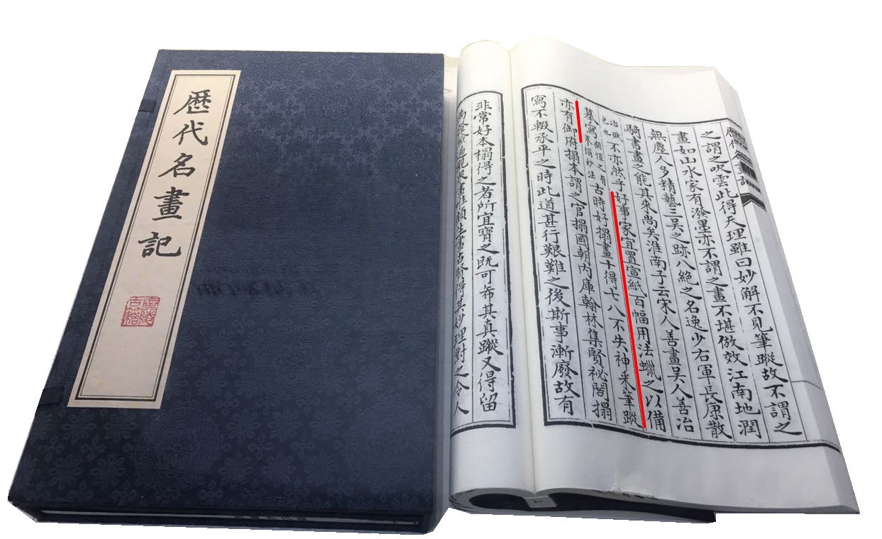 《历代名画记》是由曾任安徽舒州刺史、唐代著名绘画理论家张彦远(815-907年)在唐代大中元年(847年)所著,在其《论画体工用拓写》中说:“江东地润无尘,人多精艺,三吴之迹,八绝之名,逸少右军长康散骑,书画之能其来尚矣,淮南子云:宋人善画吴人善冶,不亦然乎。好事家宜置宣纸百幅,用法蜡之,以备摹写。古人好拓画,十得七八,不失神彩笔迹。亦有御府拓本,谓之官拓。”这是最早记载宣纸的历史文献,为后世研究宣纸起源提供了最基本的依据。