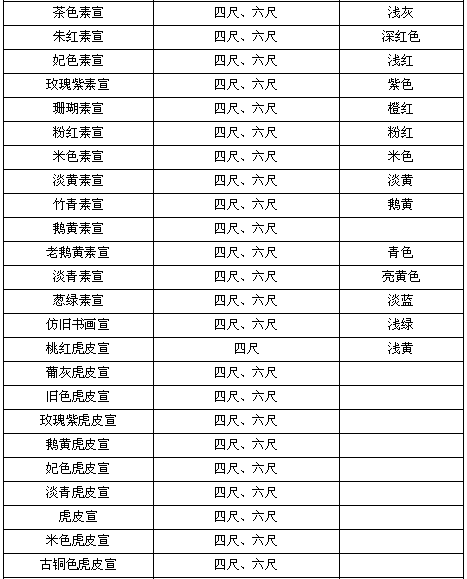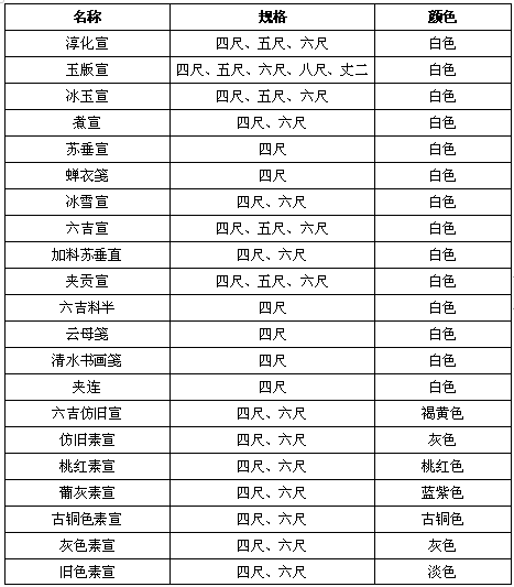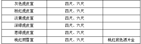 传统加工纸名称及规格