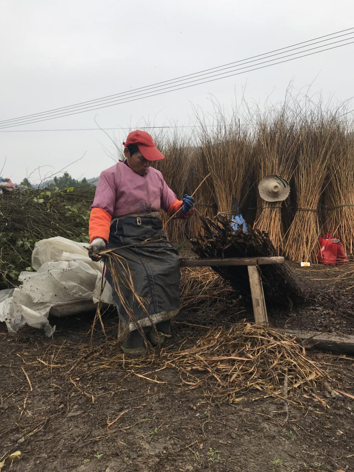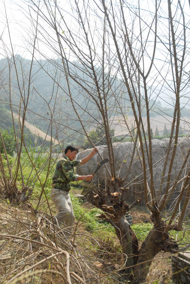 将砍下的枝条除去小枝桠、死枝桠,并将长条、短条、粗条、细条、老条、嫩条分别归类。
