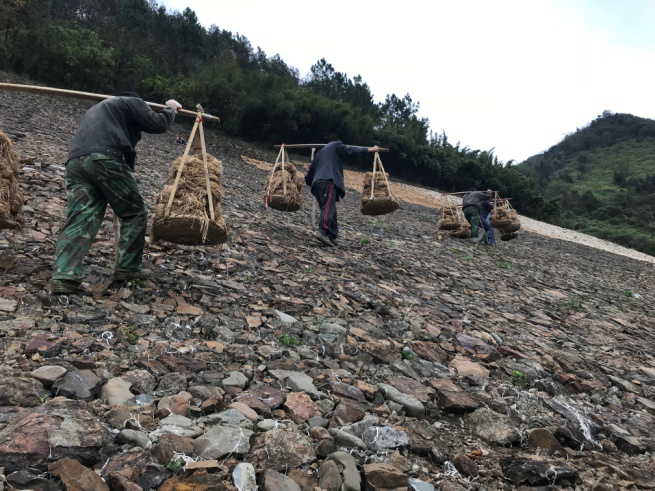 将小支合成一大支,灰渣净后理齐扎紧。