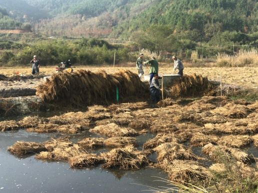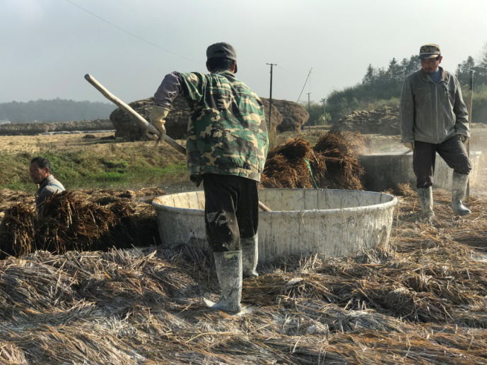 浆过灰的草束堆放进行静止发酵。