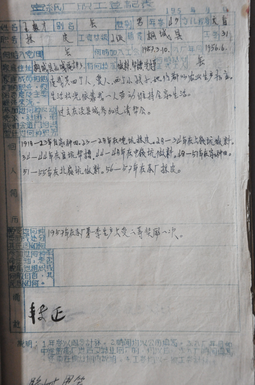 图 旧日的工人履历表