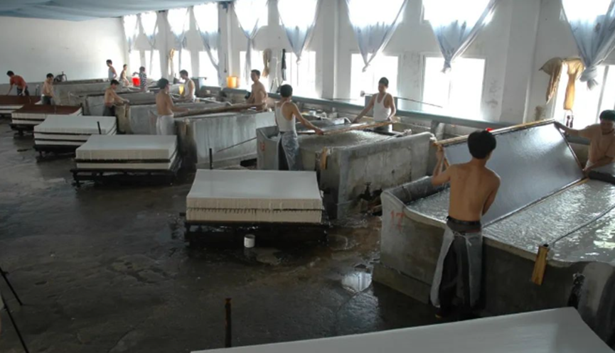 宣纸制作是一门古老而精湛的工艺,其背后涉及到多种设施与器具。 1.晒滩,作为宣纸原料加工的核心设备之一,承载着日晒雨淋露练的使命。在晒滩上,宣纸原料经历“日月光华”的自然洗礼,完成自然漂白过程,为后续工艺奠定基础。 2.碓与碾,作为传统打浆的工具,负责将经过蒸煮和洗净的原料纤维束进行分解,完成纤维的分丝帚化。这一步骤的精湛操作对宣纸的质地和光泽起着关键作用。 3.纸槽,作为宣纸成型的必需设备,扮演着捞纸的角色。在制作不同规格的宣纸时,选择相应的纸槽进行操作,确保最终产品的品质和规格。 4.帘床,又称帘槽,其架构由细杉木制成,床面则巧妙铺穿芒杆。纸帘的选择同样考究,高大质硬、竹节间距长的苦竹成为理想的材料,通过剖篾、抽丝、土漆漆帘的复杂工序,最终形成具有特殊质感的纸帘。 5.纸焙是晒纸不可或缺的设备,由砖和石灰砌成中空墙。外焙壁的用途则在于拌制石灰膏粉平,通过铜镜的压磨而成。在使用时,晒纸工需将捞出的湿纸逐张地贴在纸焙上烘干,呈现出宣纸特有的质感和光泽。 6.宣纸剪,有着“天下第一剪”的美誉,主要用于裁边规整。这一步骤的精准操作是宣纸最后呈现完美外观的关键。 在宣纸制作的众多设施与器具中,每一个都承担着特定的任务,共同构筑了宣纸这一艺术品的完美面貌。这一古老而传统的工艺,以其细腻与独特,将人们引领进一个充满历史沧桑的艺术世界。