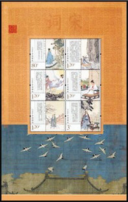 日前,2012年北京国际邮票钱币博览会在中国国际贸易中心举行。为配合此次博览会,博览会特供邮票——《宋词》宣纸小版张于邮展开幕当天隆重发行。这次发行的《宋词》宣纸小版张与此前发行的“宋词”邮票,在发行形式、材质等方面均不同。邮票的材质采用的是“红星牌”宣纸,全套六枚,设计精美,是集邮爱好者的又一收藏热品。