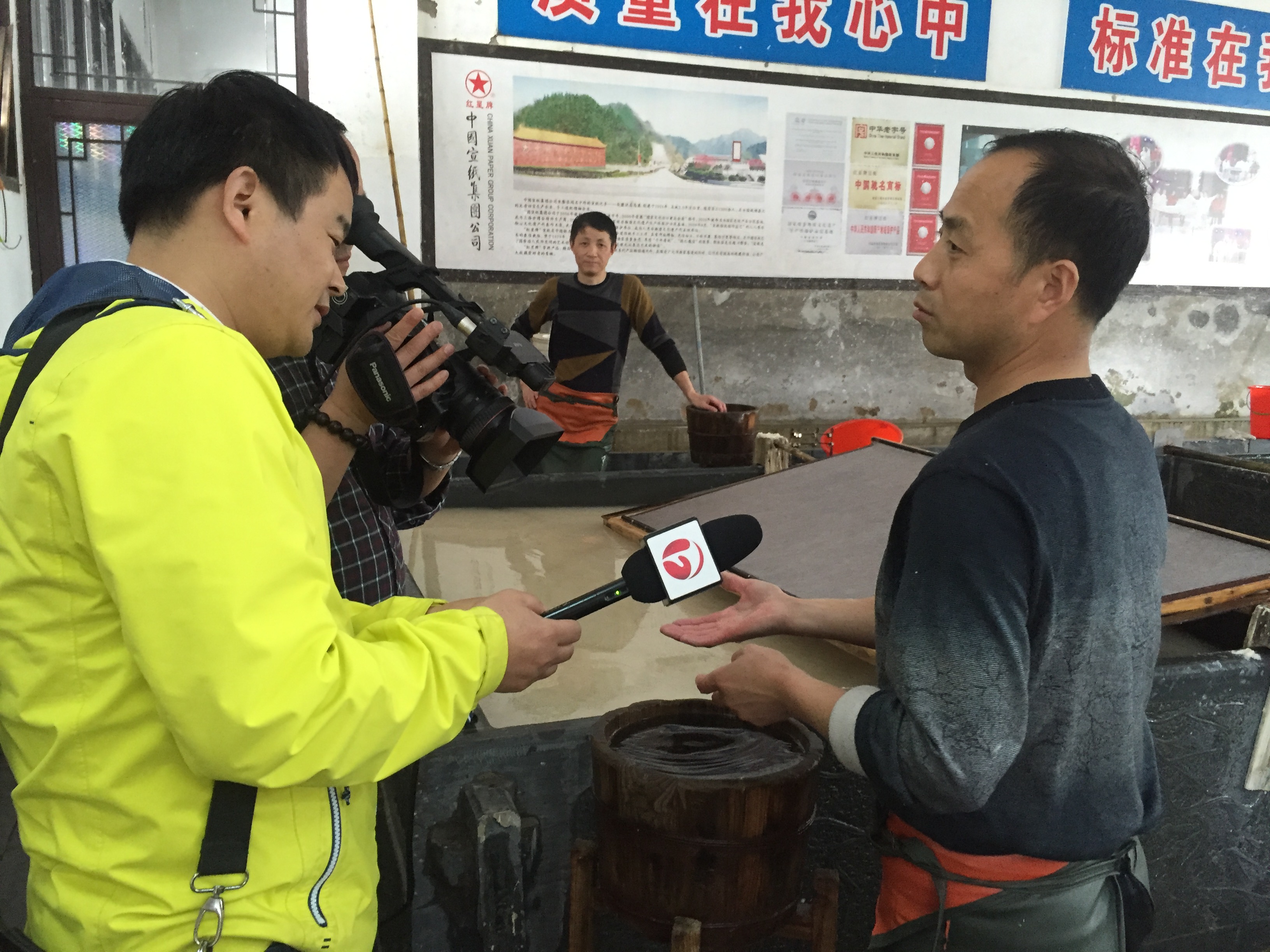 “刚开始学捞纸的时候我也觉得很辛苦,三天就不想做了,可是后来慢慢坚持下来,随着技艺的成熟,我对捞纸也热爱起来了,这一坚持就是三十年。”面对记者的采访,周东红腼腆地说到。捞纸工艺繁琐单调,需要每天不断的重复,正是由于这份对宣纸的独特感情,周东红才会三十年如一日坚持下来了。“最重要的是要保证每张纸的质量。”周东红告诉记者,捞、晒、剪是宣纸制造的最后三道工序,其中捞纸是最重要的一项。凭借丰富的经验和认真的态度,周东红至今保持产品成品100%的记录。记者还采访了威廉希尔williamhill有限公司副总经理,他表示周东红是公司的宝贵财富,也是公司全体员工的榜样,公司为周东红骄傲,同时他还表示,当今的中国需要这样一种“工匠精神”。