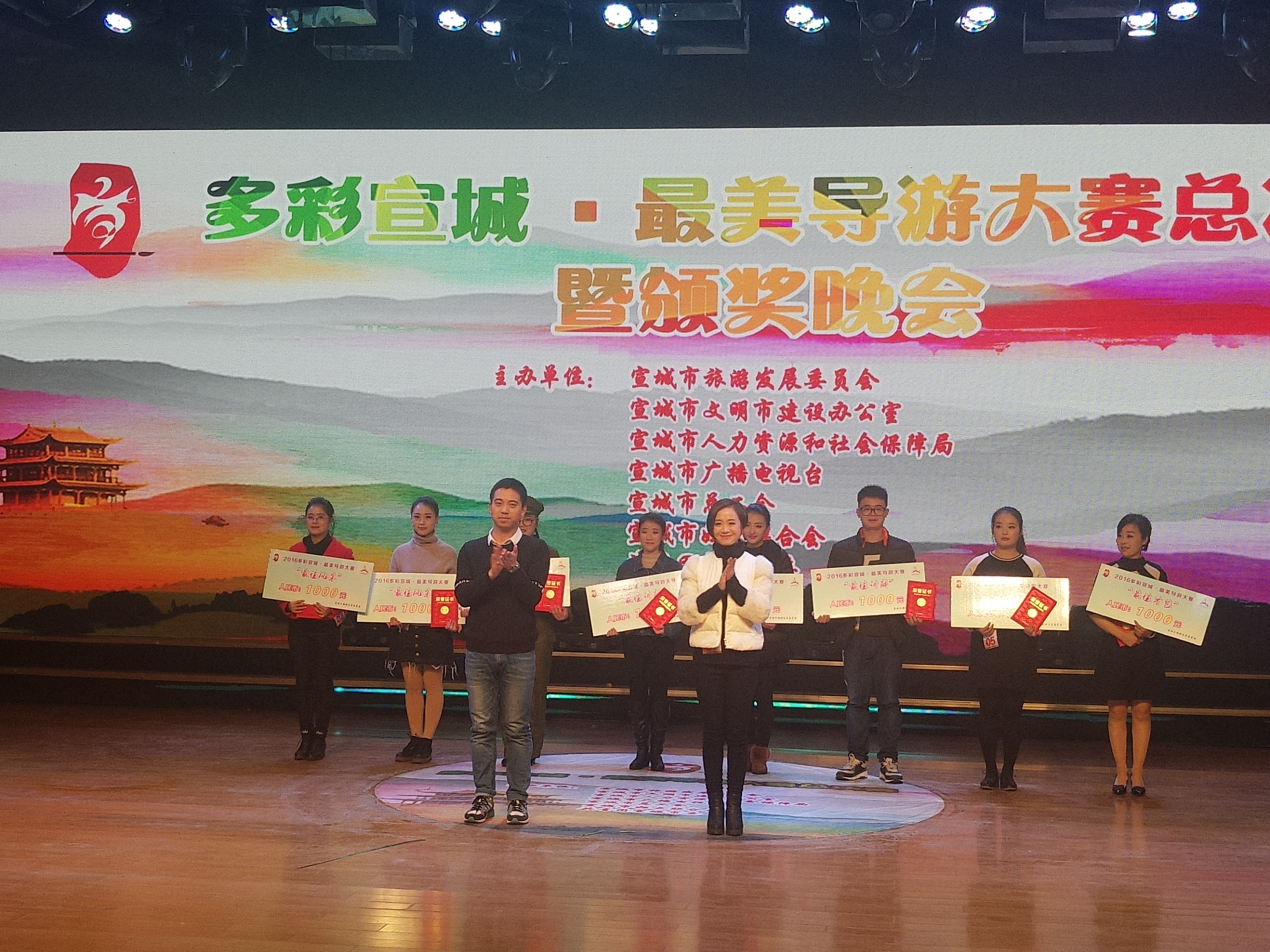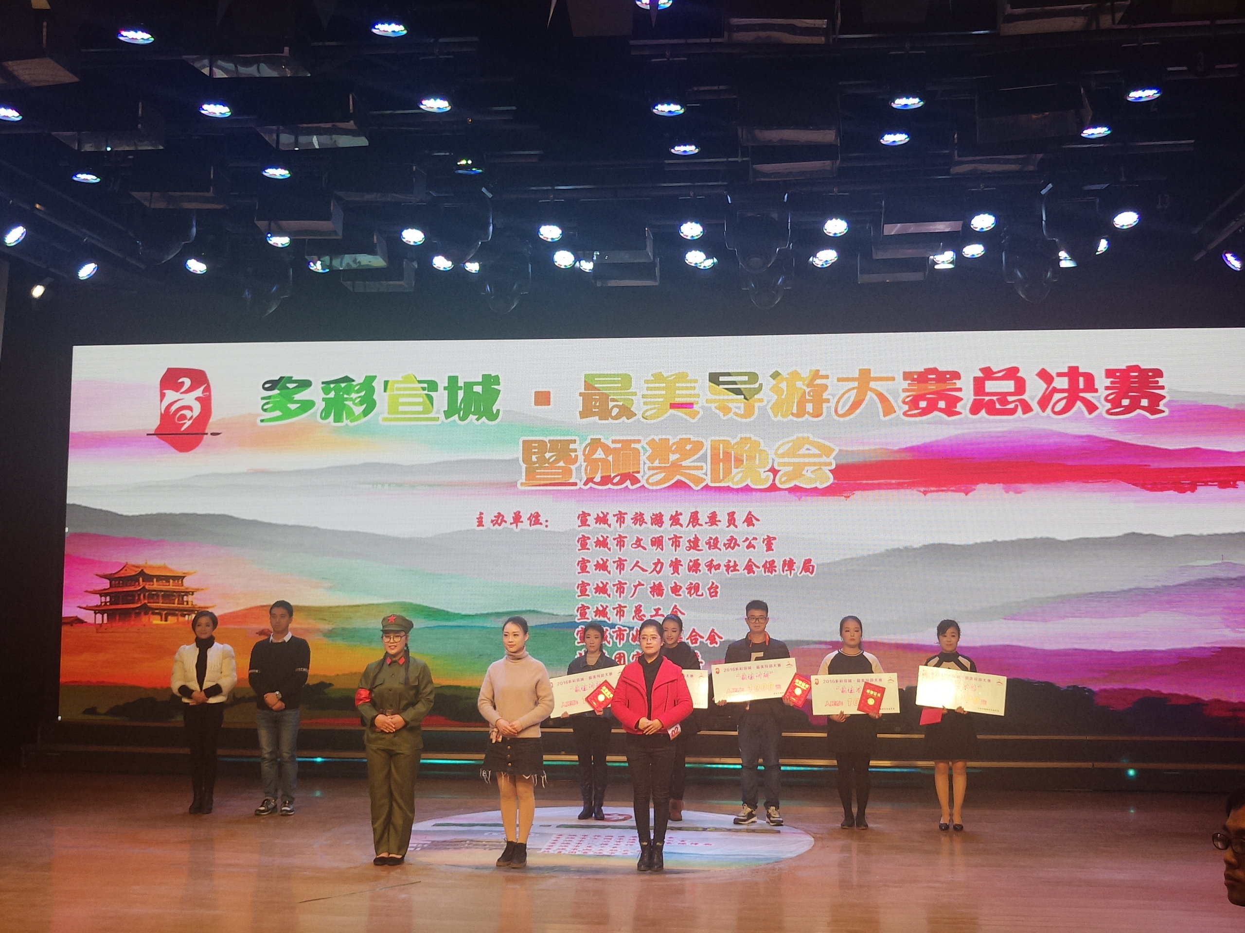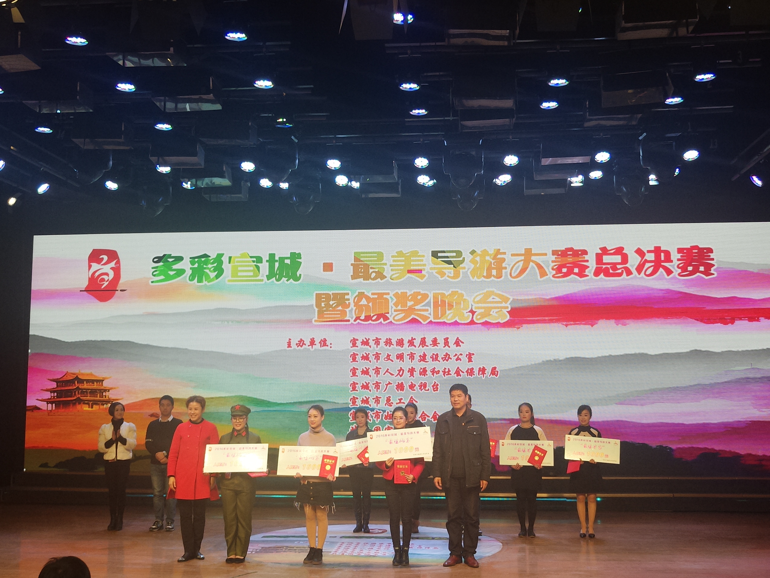日前,“多彩宣城•2016年最美导游技能大赛”决赛落下帷幕。我公司宣纸文化园2名导游代表泾县参赛,双双斩获佳绩。其中肖剑英获得“金牌导游”称号,并被授予“五一劳动奖章”、“三八红旗手”;汪文静获得“最佳风采”奖, 并被授予“青年岗位能手”、“岗位技能标兵”、“市巾帼建功标兵”。