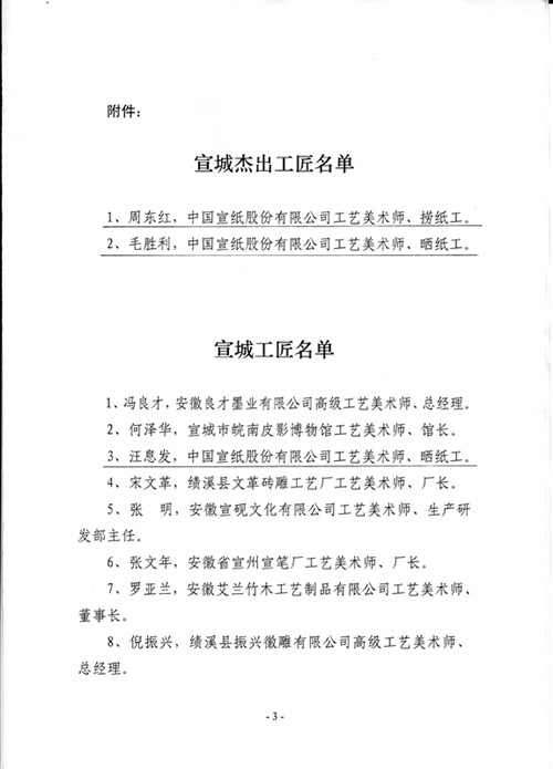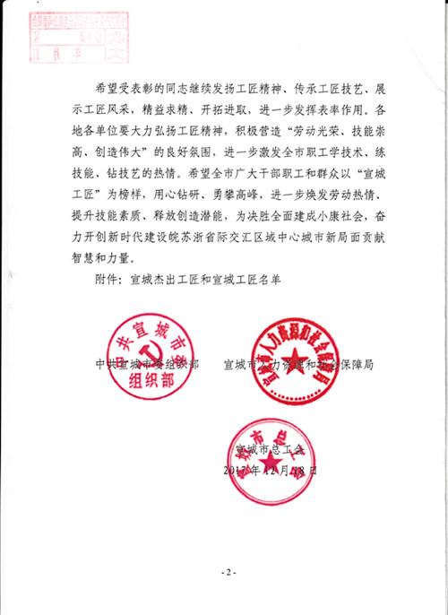 热烈祝贺公司3名员工入选宣城工匠