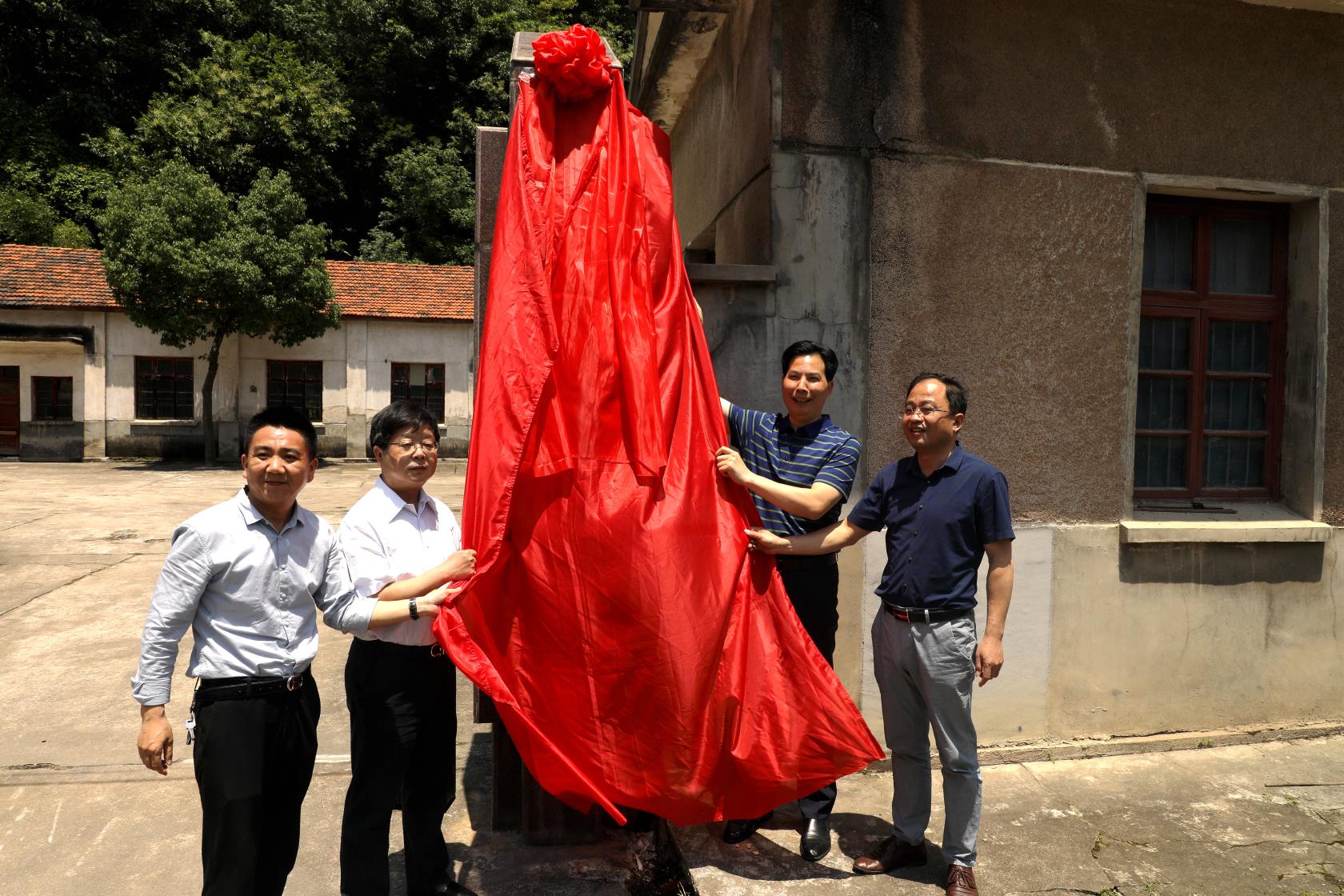 县委常委、常务副县长高真理、宣纸股份公司董事长胡文军、县国投公司总经理兼小镇公司监事会主席曹大昀、宣纸股份公司总经理兼小镇公司董事长、总经理朱大国共同为安徽泾县宣纸小镇公司揭牌。