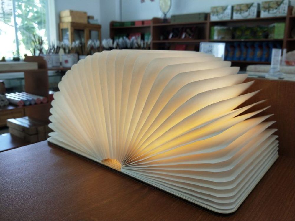 可以折叠的宣纸书灯就是宣纸走向家居的一个尝试。闭合是一本书,打开是一盏灯,在灯光的照射下,宣纸独有的纤维清晰可见。