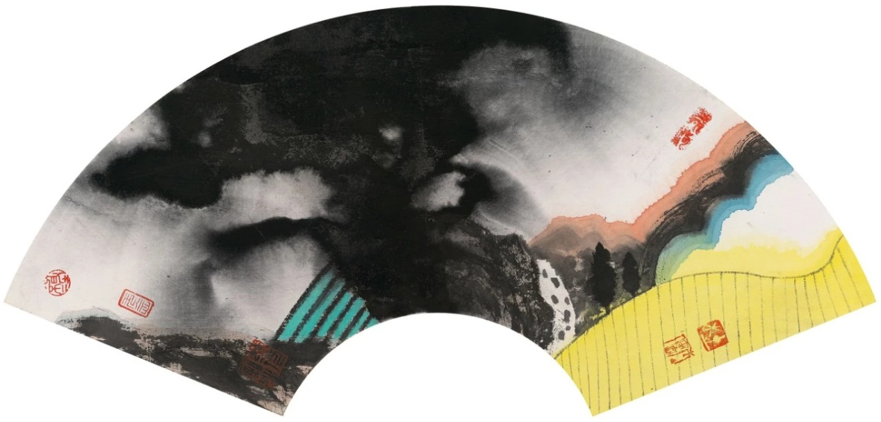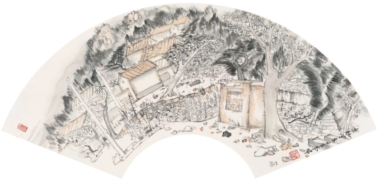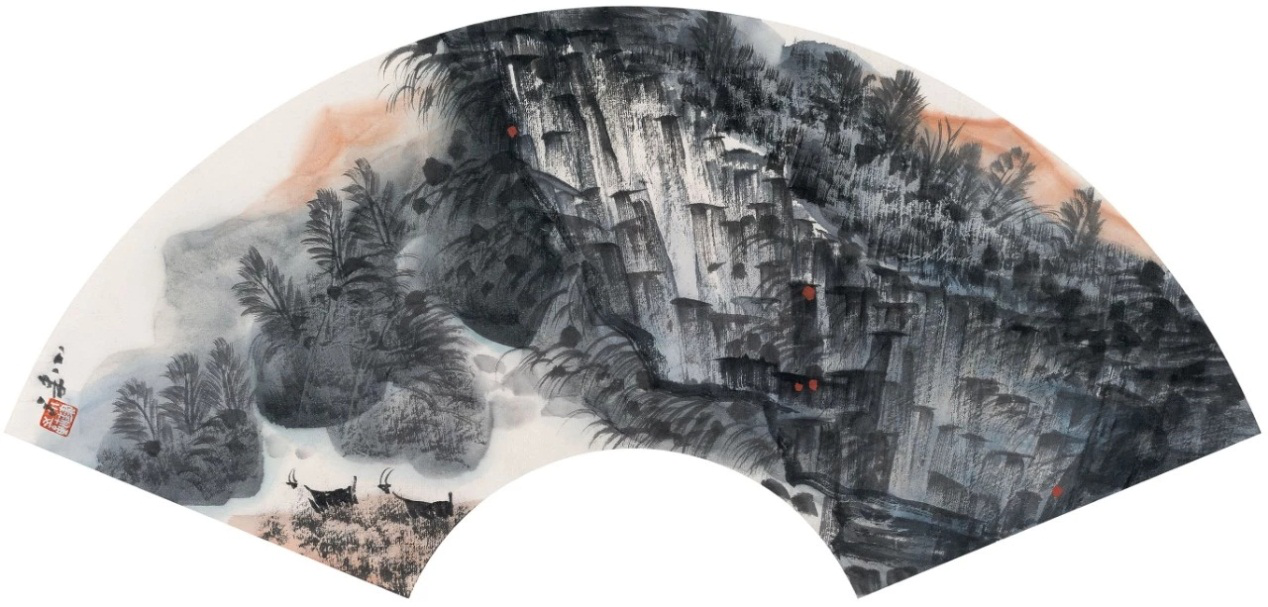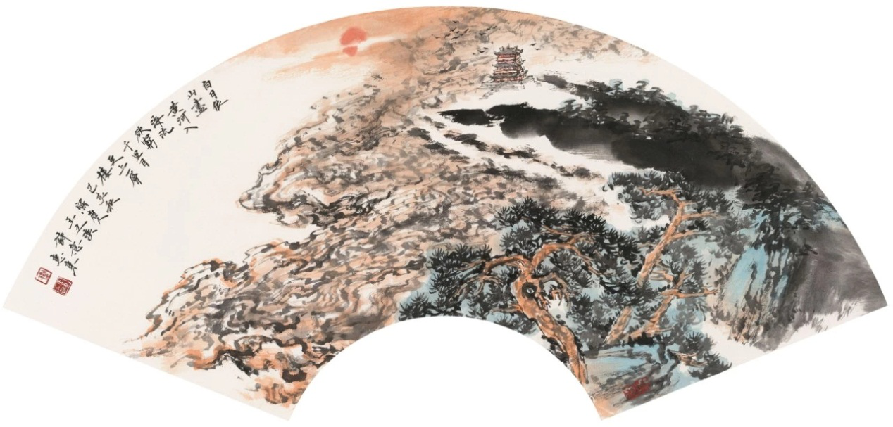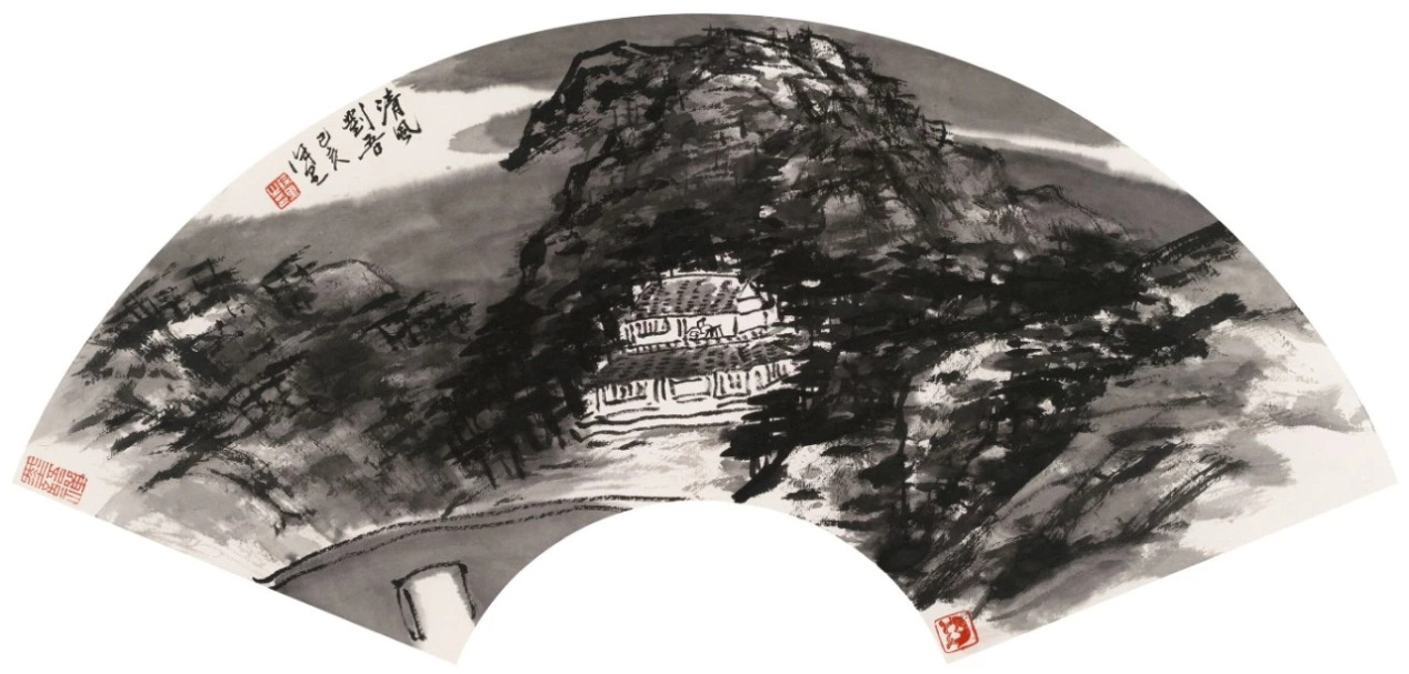 与团扇相比,折扇更为复杂,有筋有骨,见开见合。折扇画的绘制,也更加讲究,更见功力。对画面布局、墨色线条、题材创作的要求更高。当代中国,盛世昌盛,传统文化日渐复兴,山川人物,代有人出,其中也不乏山水名家善于绘扇者。王金石、徐里、刘罡、旷小津、张桐瑀、李伟、杨惠东、石峰、杜松儒这九位艺术家(按年龄排序),皆为当代山水书画名家,亦是画扇高手,其山水巨制,或清秀俊雅,或浑厚壮美,其扇面创作,则小中见大,各具风流,既凝聚着个人风貌,又富于时代精神。