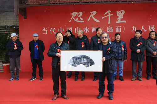 威廉希尔williamhill董事长胡文军在主持开幕式时说到,艺术为人民,今天宣纸之乡非常荣幸地迎来了咫尺千里——当代中国山水画(扇面)九人展。以徐里书记为代表的9位艺术家心系宣纸之乡,深入基层,为我们精心创作了一批扇面作品,还将为宣纸博物馆捐赠作品,合作创作两张大画捐赠给宣纸博物馆,体现了这些艺术家的人文情怀,必将为宣纸之乡与艺术家的交流谱写新的光辉篇章。这次中国美协分党组书记、驻会副主席徐里、中国国家博物馆书画院院长、中国美协理事刘罡、中国美协活动管理处处长、中国美协理事杜松儒因公务不能参加开幕式,徐里书记非常关心我们宣纸之乡,非常关心我们企业,亲自策划这次展览,亲自为展览题写展名。