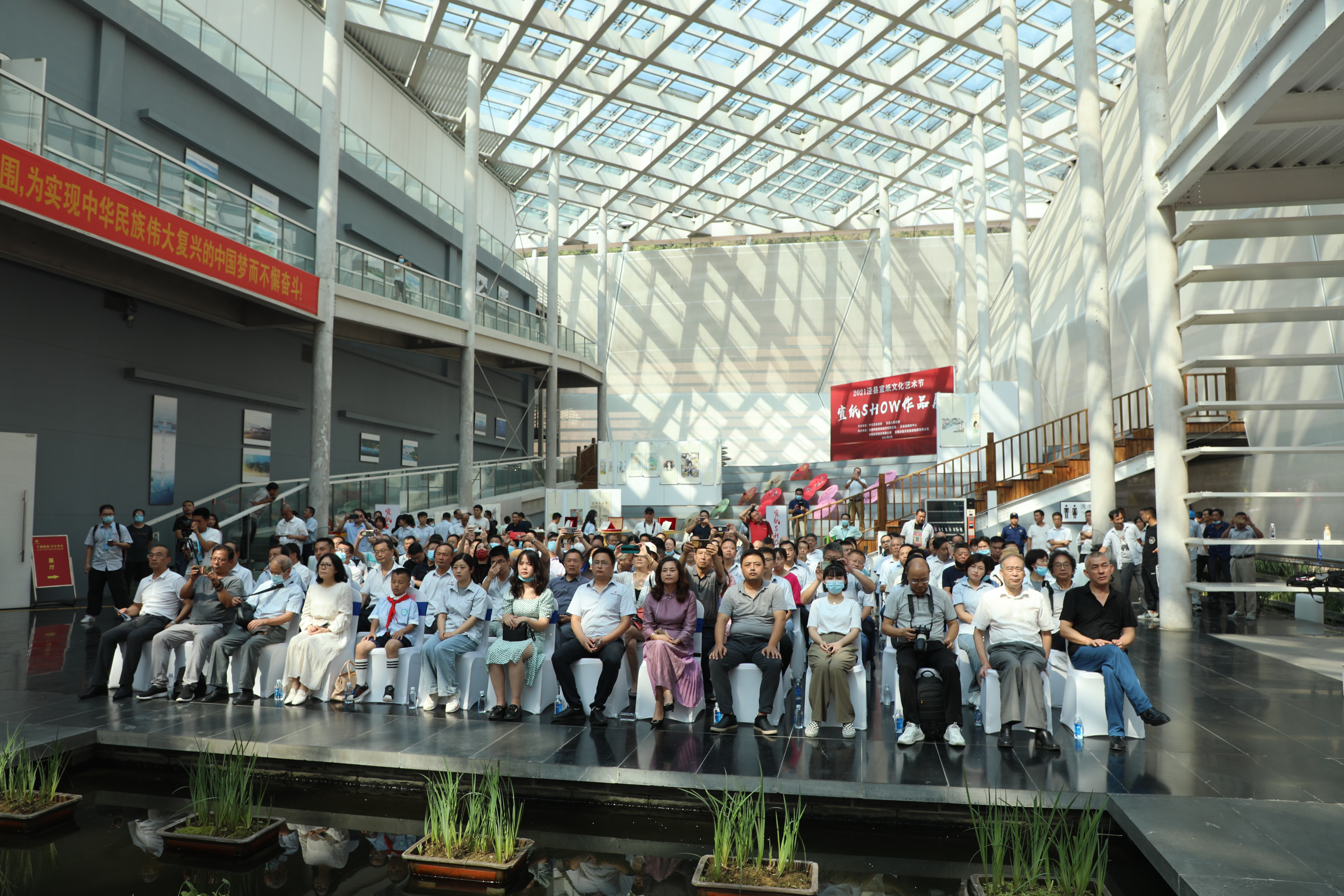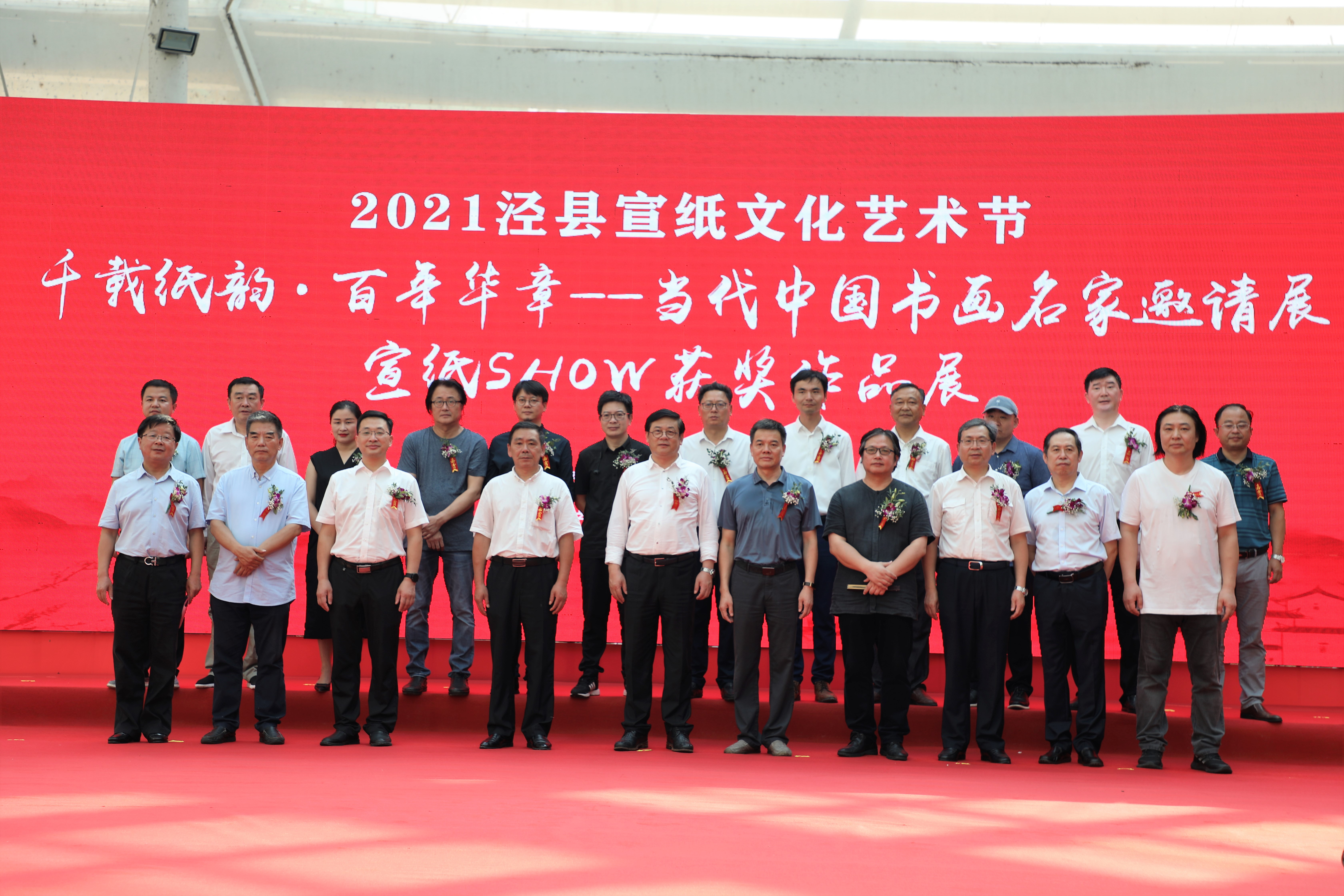 领导和嘉宾合影后,共同参观了宣纸SHOW作品展和千载纸韵•百年华章—当代中国书画名家邀请展。