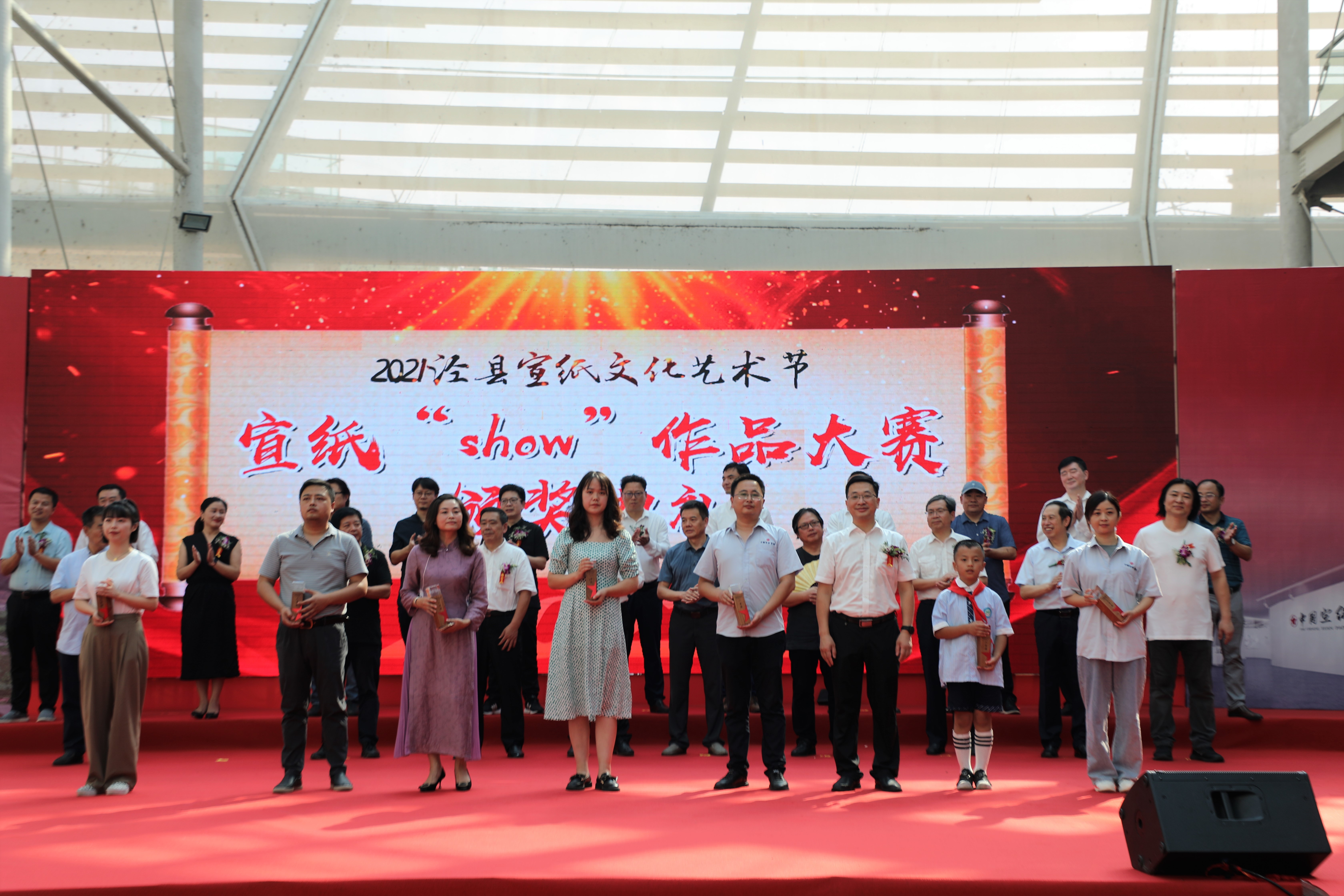 在开幕式上,举行了宣纸SHOW优秀作品颁奖仪式。主持人胡文军宣布了宣纸SHOW获奖名单。县委副书记钱会为获得一、二、三等奖的7名获奖者代表颁奖。威廉希尔williamhill余亮、泾县千亩园学校康娟获一等奖,威廉希尔williamhill汪文珺、泾县城关三小李奕凡获二等奖,安徽三希堂文化产业有限公司、泾县上洋宣笔厂、泾县第二中学卫昱获三等奖。未参加现场颁奖的获奖作者、优秀奖、网络人气奖等,组委会将通过邮寄等方式送达。