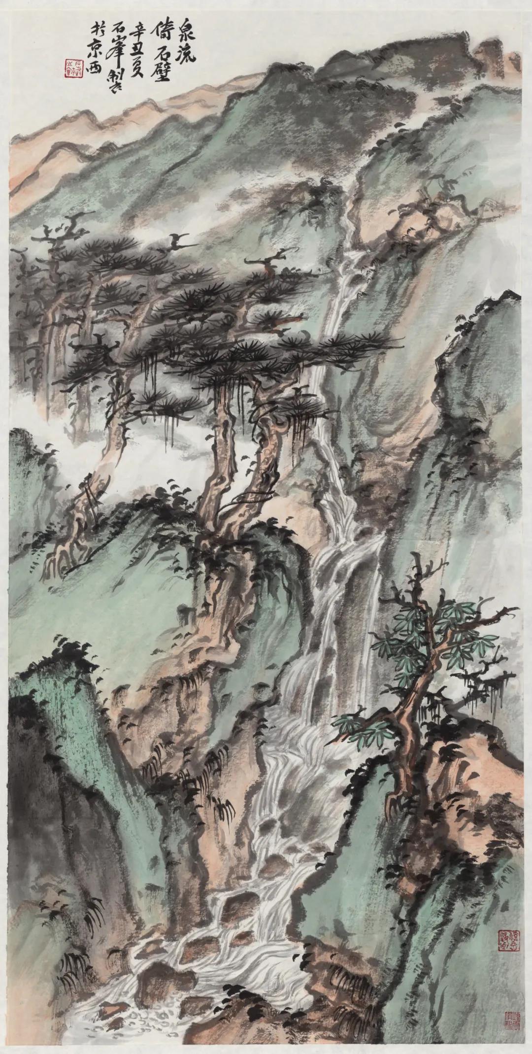 石峰 泉流倚石壁100×50厘米  创作年代:2021年