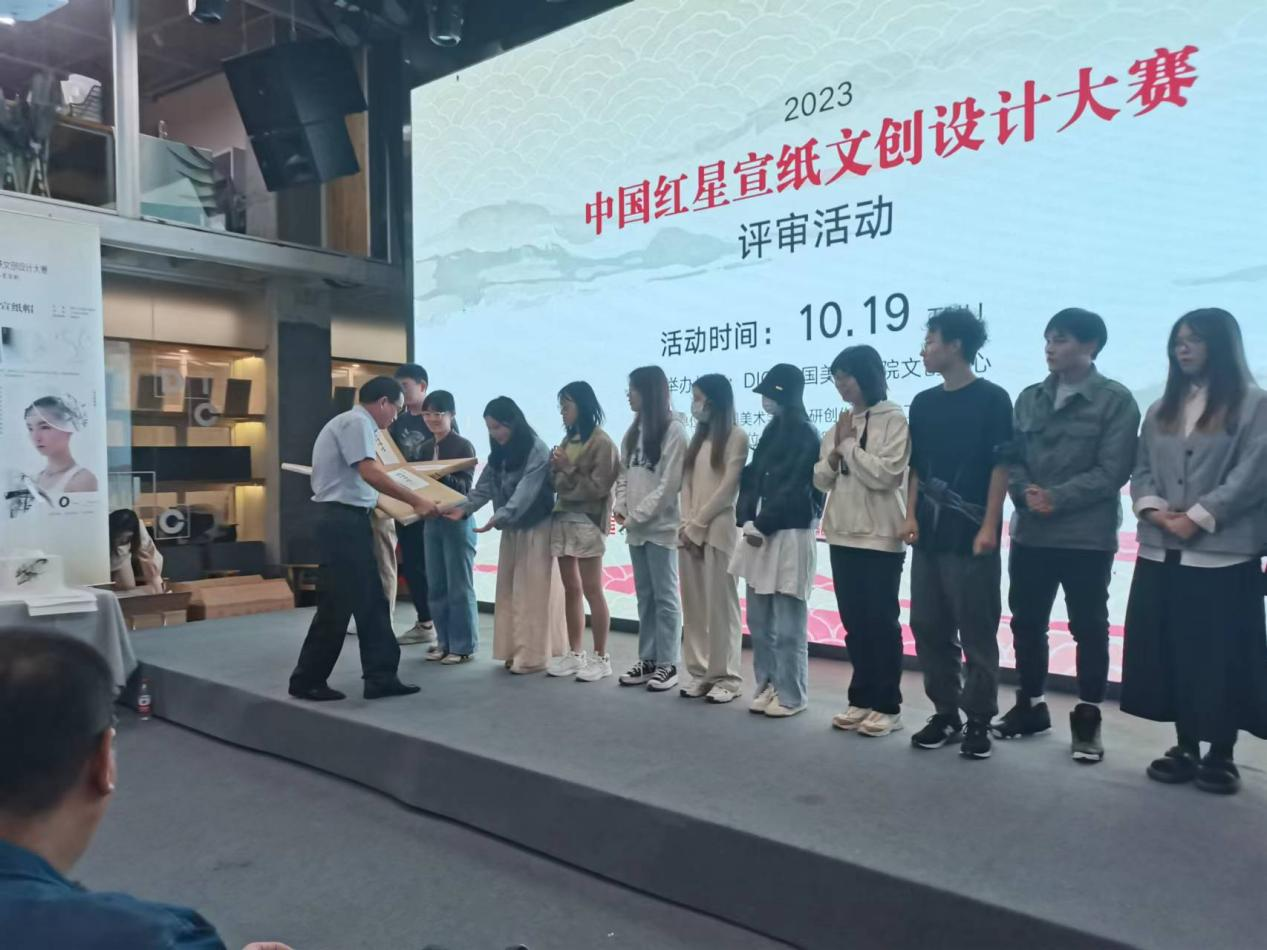 此次活动展示了以“红星宣纸”为元素创作的文创作品共计19件。评审现场开晓陆和中国美院学工部部长韩亮等指导老师对学生作品逐一观看、点评,最终评审出:一等奖两项、二等奖五项、三等奖八项。开书记向同学们表示祝贺,并为每组参赛同学颁发“红星牌”宣纸作为奖励,希望大家能用红星宣纸创作出更多更好的作品。本次参赛作品将于宣纸艺术节期间在威廉希尔williamhill文化园进行展览,届时欢迎大家前来观展。