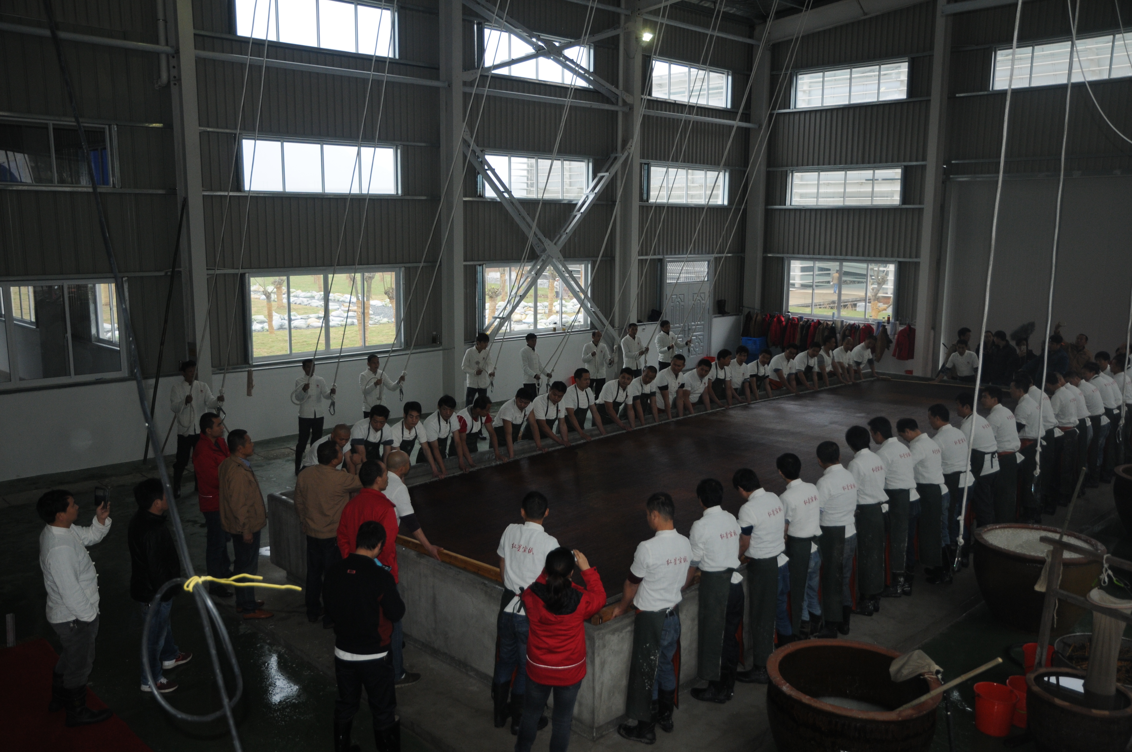 据悉,宣纸作为传统手工珍品,具有尺寸越大、人数越多、抄制难度越大、艺术价值越高的特点,而这种“超级宣”,是真正意义上的传统、手工、二帘水的“超三丈三”宣纸。需要捞纸及辅助工52人、晒纸工20人、剪纸工4人,成品纸尺寸达11米×3.3米,难度极大。 “三丈三”巨型宣纸主要适用于大型宾馆、楼堂馆所创作巨幅书画艺术作品,它的成功问世,不仅为书画艺术家们创作大型书画艺术作品提供了特种宣纸,也为传承与发展宣纸技艺作出了贡献。(来源:中安在线-安徽日报)