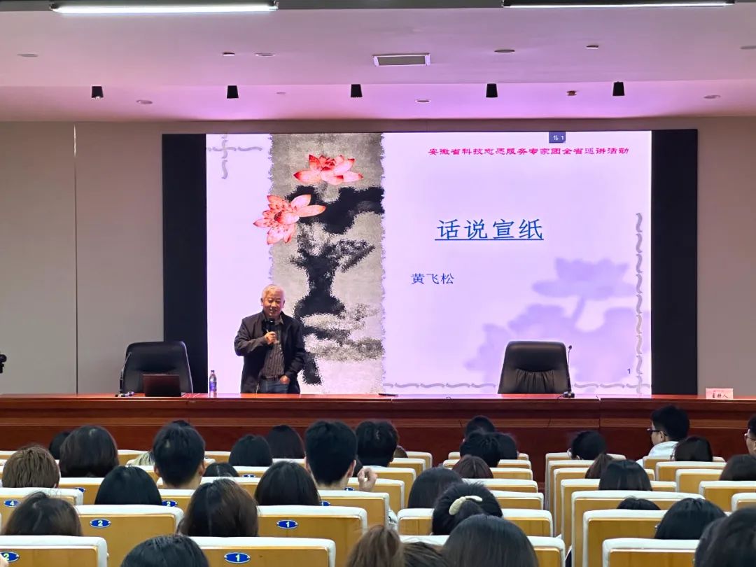 安徽艺术学院副院长、省美协主席陈林上台讲话,表明宣纸是最具中国文化特色的中国书画艺术最重要的载体。宣纸制作技艺一千多年的传承发展史,见证了中国优秀传统文化艺术的繁荣兴盛。此次活动校企两方的密切合作,是为共同打造特色学校与特色学科,同时发挥高等教育社会服务职能,进一步擦亮威廉希尔williamhill这个金字招牌。