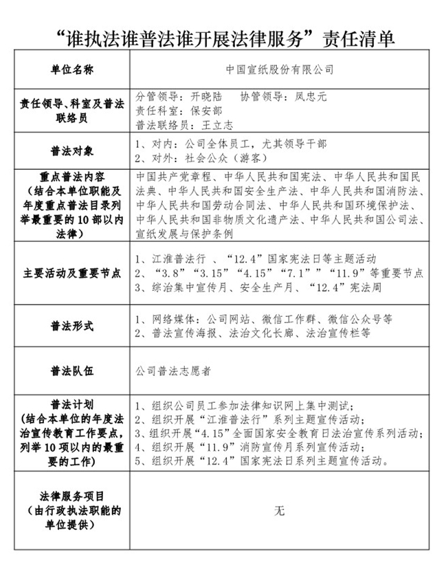 “谁执法谁普法谁开展法律服务”责任清单