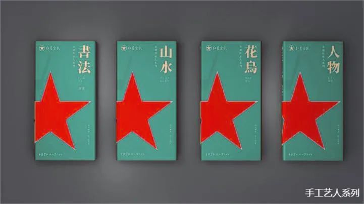 此次将红星宣纸品牌形象的重要元素——标志性的五角星放大呈现,进一步提升了产品的辨识度和用户的记忆度。“非遗传承人系列”选用红、金两种颜色,“手工艺人系列”选用蓝、红两种颜色。
