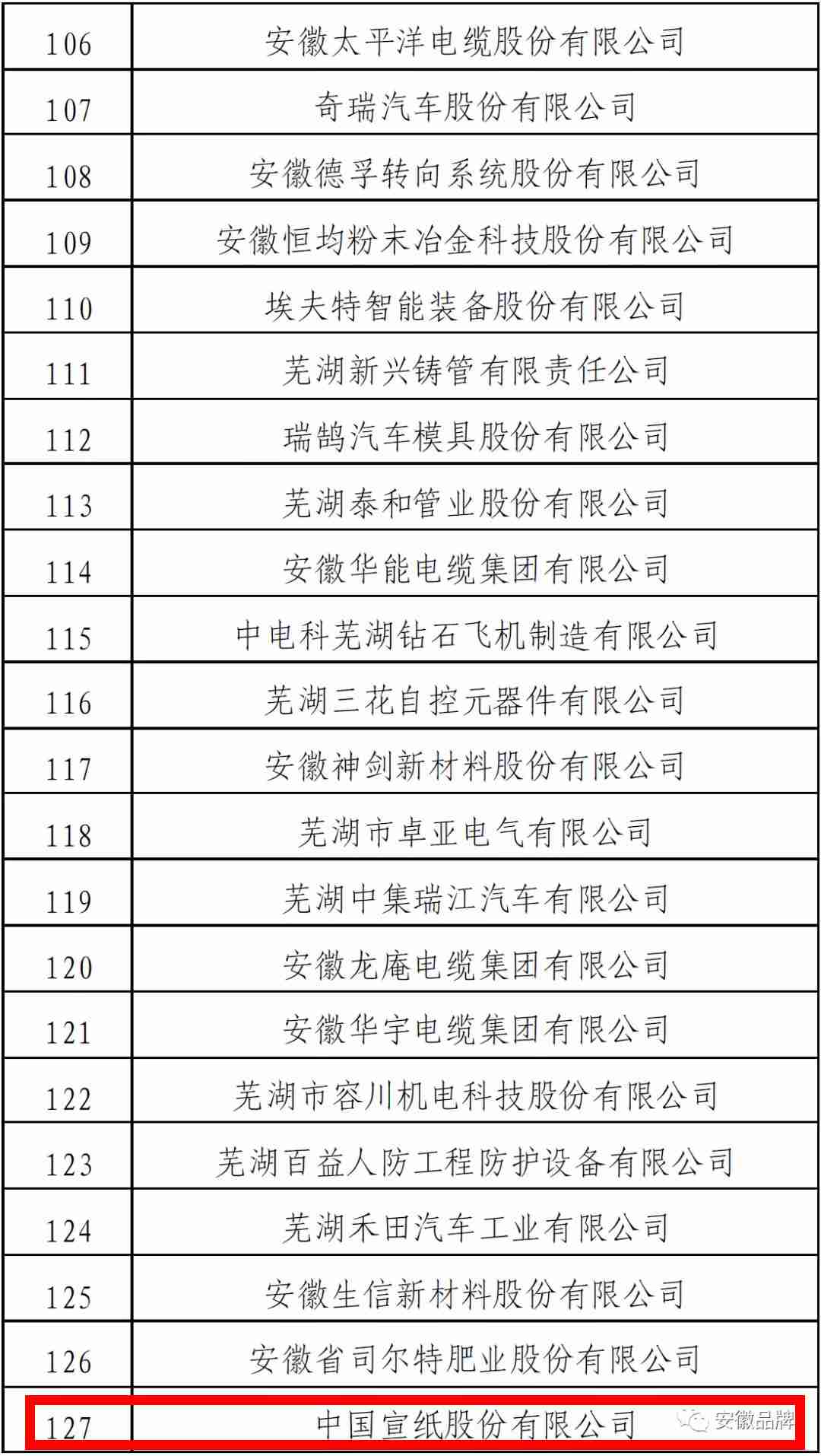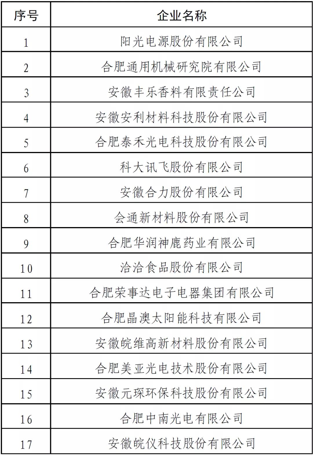 首批安徽省制造业高端品牌培育企业名单