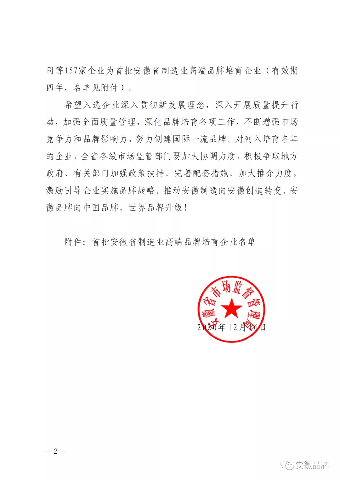 据悉, 安徽省制造业高端品牌培育企业是省市场监管局深入贯彻落实国务院办公厅《关于发挥品牌引领作用推动供需结构升级的意见》(国办发〔2016〕44号)和《中共安徽省委 安徽省人民政府关于开展质量提升行动推进质量强省建设的实施意见》(皖发〔2018〕30号),大力实施安徽品牌发展战略,增强安徽企业核心竞争力和品牌影响力,依据《制造业高端品牌企业培育》地方标准开展的一项评价工作。经自愿申报、初审推荐、资格审核、专家评审和社会公示等程序,全省首批共有157家企业被评为安徽省制造业高端品牌培育企业。