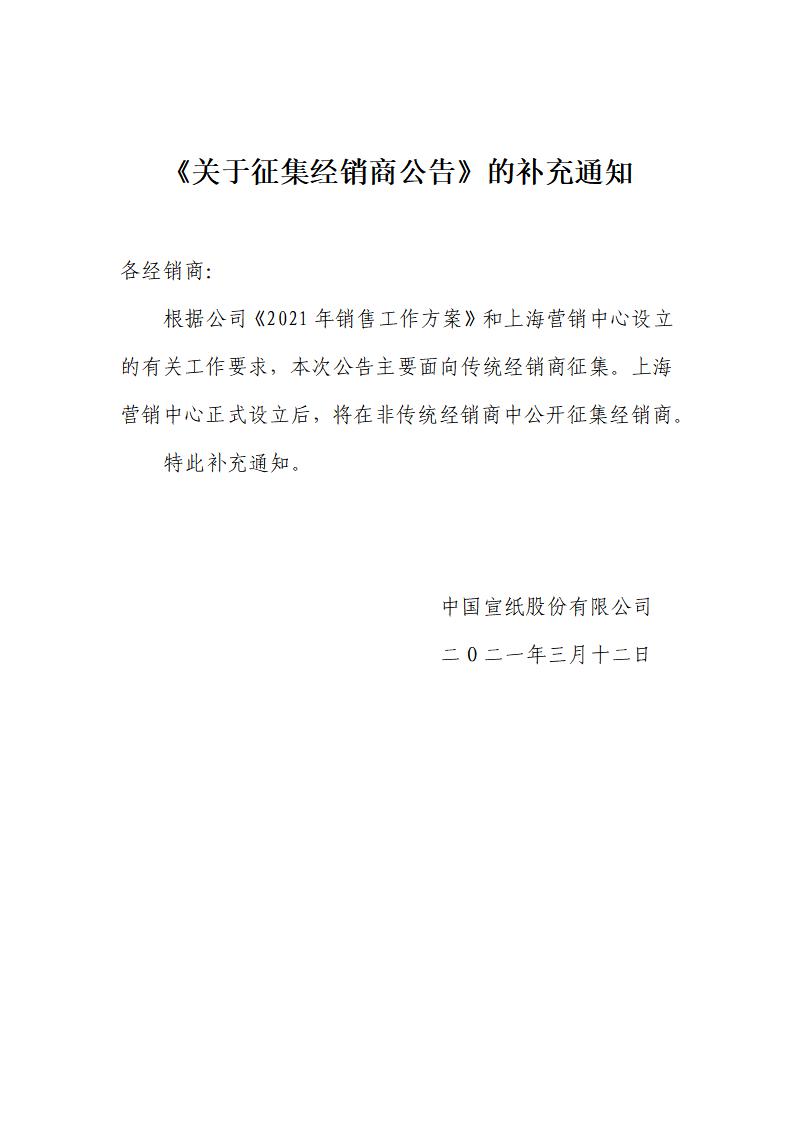 关于征集经销商的公告及补充通知