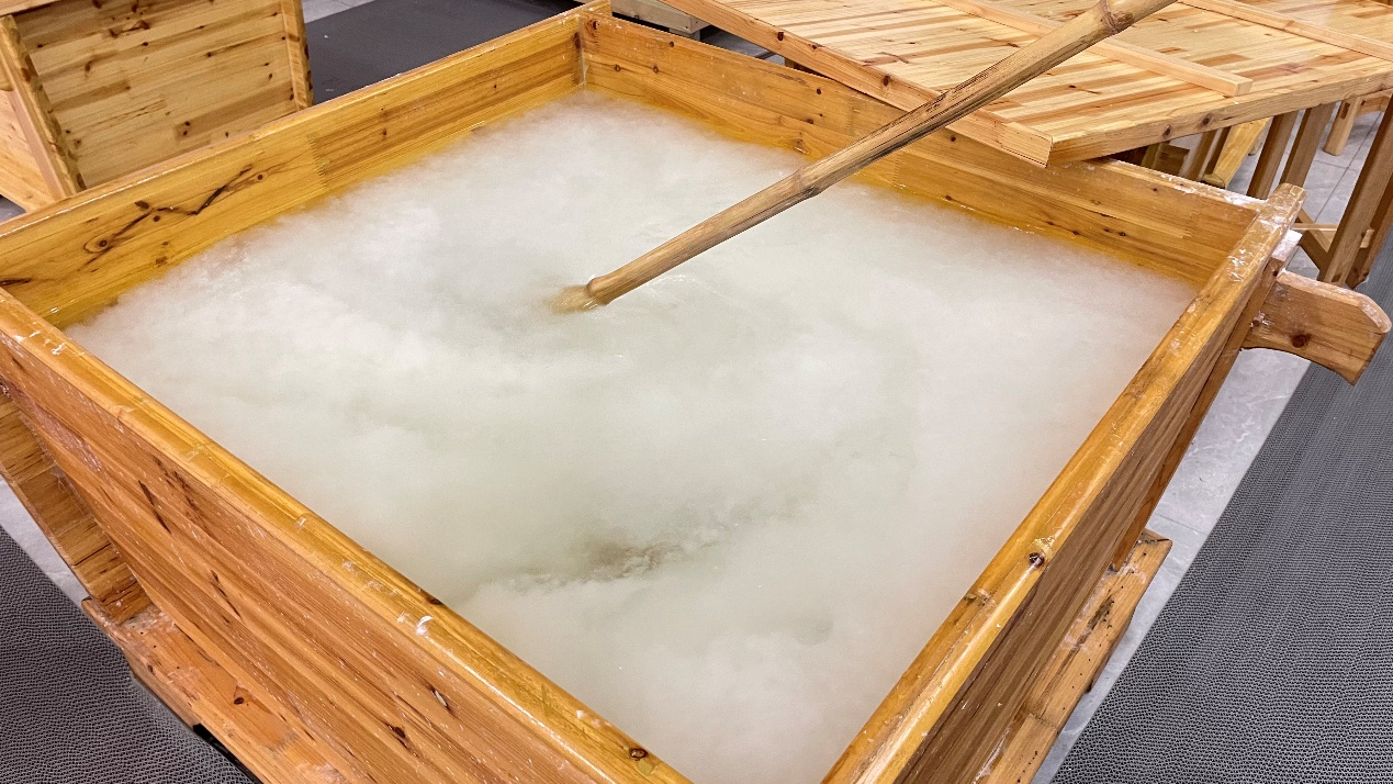 其中,“宣纸文化历程”展区主要介绍了宣纸的发展历程和重要地位,展示了宣纸在历史上的文化价值和影响力。“宣纸技艺展示与体验”主题展区中,详细介绍了宣纸复杂的制作工艺,同时还为游客提供了宣纸“捞纸”工艺的体验项目。