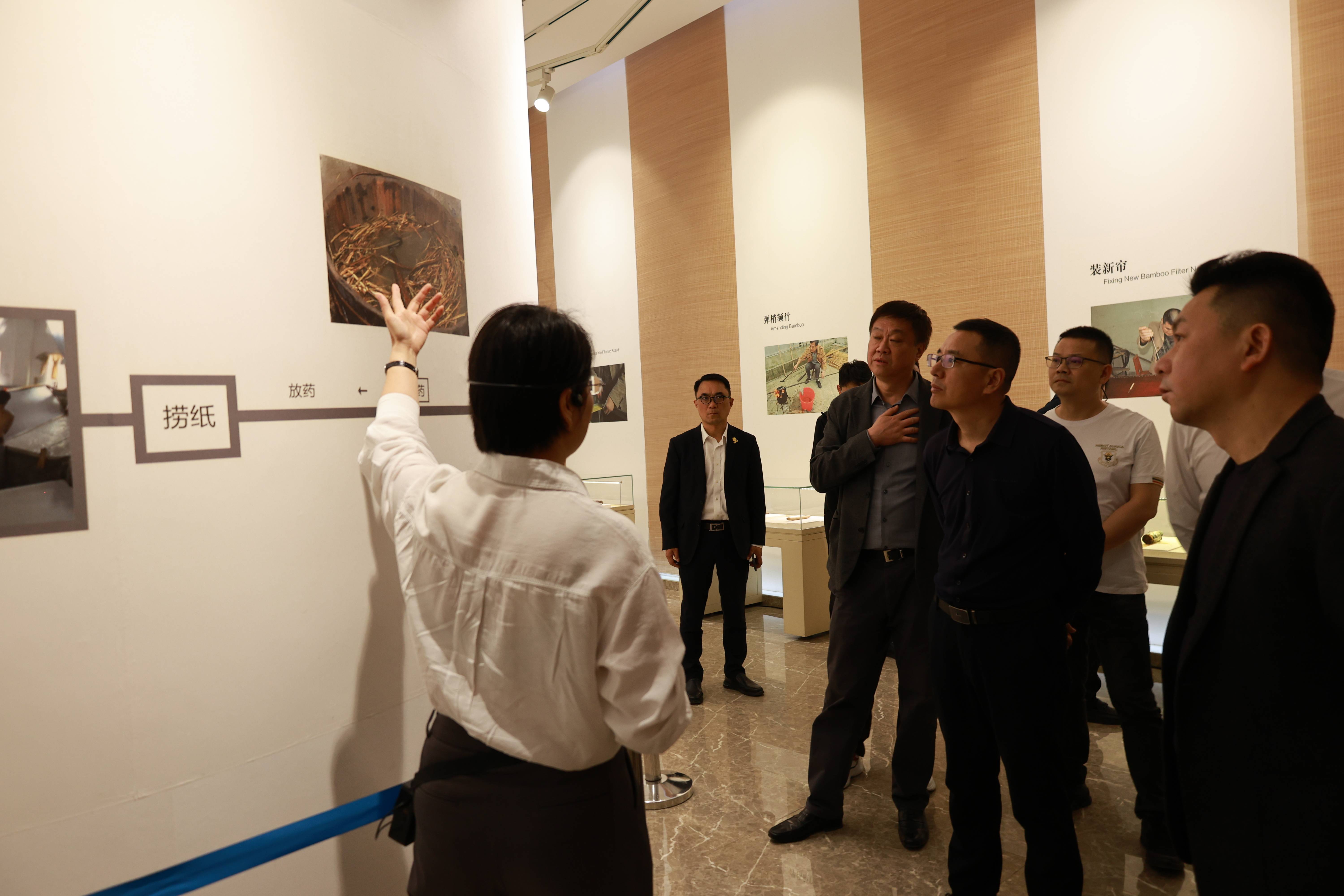随后,考察团走进威廉希尔williamhill文化园,重点参观了威廉希尔williamhill博物馆。在博物馆中,通过专业的讲解和一幅幅珍贵的藏品,嘉宾们清晰地了解到宣纸千年的发展脉络。